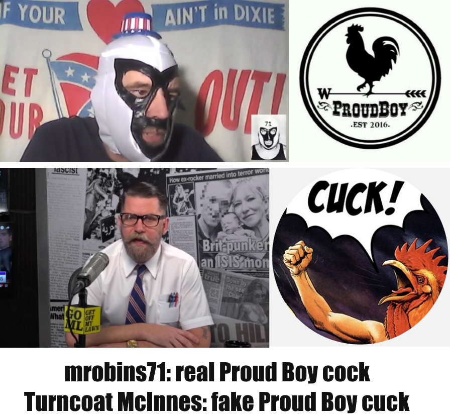 With the cowardly bailing of Proud Boy founder and apologist “leader” Gavin McInnes, the Proud Boy movement is in a state of chaos. It’s pitiful how you’ve been misguided by this cunt-face into becoming a laughing stock of homoeroticism and beta-boy cuckery, referred to mockingly as “alt-light” by the alt-right that doesn’t make conditions on jerking off part of a fraternal oath. And chumming around with pedophile apologist Milo Yianopollis didn’t help any either. So I officially throw my hat in the ring for consideration as LEADER. Your fraternity is in dire need of reform. And I will not cower or cuck as your former “leader” did, who was quoted in the New York Times as “disassociating” himself with you “in all capacities, forever.” What a fucking Judas. I will not desert you. I will lead you proudly, as a real Proud Boy would. I will not abandon you when the legal waters get too hot. In fact, I revel in the rolling boil. I’ll never peddle my cowardice under the guise of the best interest of the group. I pledge to never make a statement like this weasel McInnes, “I was never the leader, only the founder.” If elected, I will unconditionally and proudly be your leader. I will be a PROUD Proud Boy. Like a charlatan Eddie Haskell, I will not goad you into conflict in NYC or anywhere else….stand in the street brandishing a sword as if I’m some kinda warrior or revolutionary….just to turn my back on ya a few weeks later when the going gets tough. I have too much loyalty and respect for you. And I will not make a laughing stock out of us by pissing and moaning how my Hollywood friends have bailed on me over some trivial bullshit, when I bailed on you over some truly important shit.