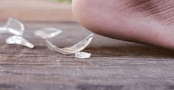 A young man was walking to the village when he stepped on glass. It cut him and stuck in his heel, causing him pain. It hurt and he bled. He pulled out the glass, then turned back to hobble home where he cleaned the wound and wrapped it in linen. He remained off his feet for several days while it healed. Stepping on glass was so upsetting that he remained inside for many years, thoroughly sweeping his floor three times a day, fearful of ever stepping on anything ever again.