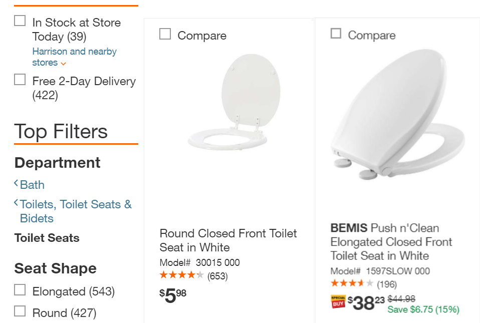 “Well, I bought the cheap one – the 6 dollar one,” I said. “But they’ve got one toilet seat for 40 bucks. They’ve got fancy ones but I’m not sure what all they do.”