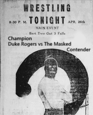 “We’re looking for another masked man,” Pratt said. “The Crimson Madman just left the territory. He was a tremendous heel. Sold us out all winter but they needed him in Texas.”