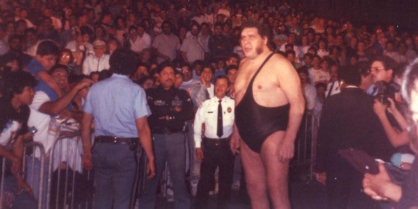 So when she said that about all the old wrestling footage getting scrubbed for cultural decency, that’s what I thought for a while about André. But then I realized, like most things, it’s probably gonna be a bunch of inconsistent, hypocritical bullshit like everything else. In other words, a bunch of nonsense like all the other nonsense of the world. And when most everything’s nonsense, what’s the point in worrying, caring or thinking about it too much? So I don’t worry much, I just think sometimes. See, I got a stockpile of that stuff in my garage. And I ain’t gonna pretend that anytime soon it’s gonna be demonized or confiscated like the most unlawful of pornography or folks freak out about their guns and ammo every election cycle. I ain’t gonna worry about it cause I’d be willing to bet most if this is just a bunch of posturing, pandering cultural nonsense, just like the bullshit with guns, taxes and medicine. It’s nothing anybody wants to take seriously, which is to say, address with any degree of consistency. If we wanted to take our self-professed “progressive” cultural standards seriously, we’d simply scrub the culture of this physical drama between insensitively conceived stereotypes. But there’s money to be made. And so long as you make a petty gesture at making it more palatable to the Overlords of Culture, they get to morally posture and preen while Peacock gets to make its coin. Everybody’s happy, so no problem. No hassles. But no consistency either, just like all the rest of our bullshit.